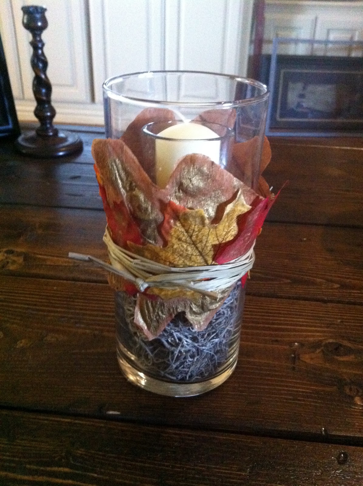 My fall decorating started with a trip to Hobby Lobby, only to return home and realize I had bought almost all the same stuff last year in the after season clearance sale. I returned the items and went to Dollar Tree to see if they had anything different and found a lot of stuff to compliment what I already had!
